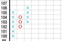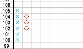 101円に下落した場合は○列の101円のところに○を記入すればOKです。