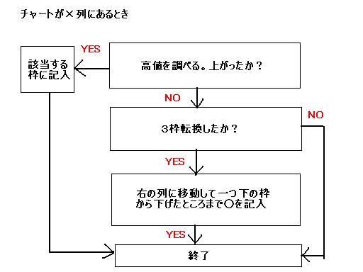 ちなみに記入する場合は前日の高値と安値を確認し記入します。ここではわかりやすくチャートフローにして書いてみます。